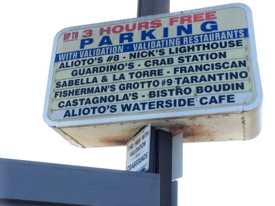 Parking validators for the Triangle LotParking tip #4: A number of the restaurants at Fisherman's Wharf will validate parking at the Triangle Lot near the Fisherman's Wharf sign.