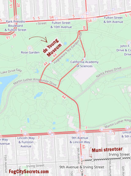 The Hop On Hop Off buses also stop near the de Young Museum. See HOHO bus for more info and booking.
