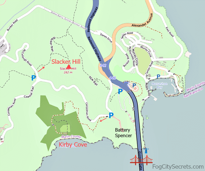 Battery SpencerMore parking ideas. If you can't find parking in the first three turnouts on Conzelman Road, there are some alternatives.